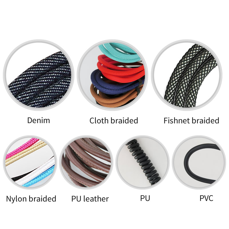 PVC, TPE, PU, nylon braided, Pu leather, denim, fishnet braided, and cloth braided etc.